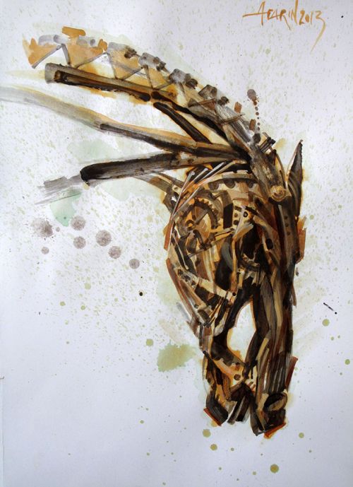 DRAWING SKETCH FOR THE SCULPTURE, Mixed media, 38 x 26 cm, 2013